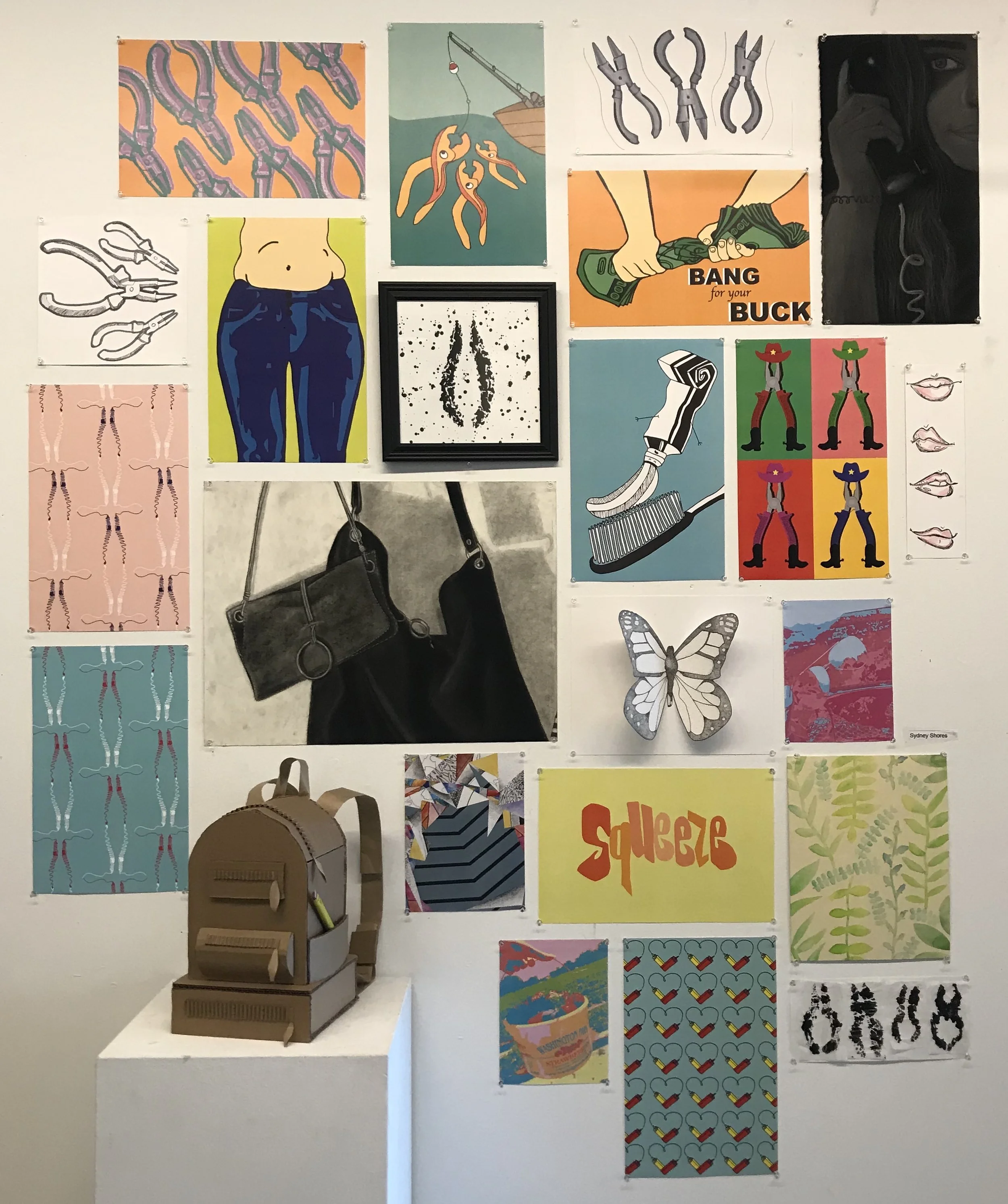 The work included in this portfolio is from the classes Drawing 1, Color & Composition, 3D Design, and Graphic Survey. The requirement for this portfolio was to have at least 50% of the work put up be from Graphic Survey and the rest from other classes. The reason why many of my pieces on this wall deal with pliers, is because in Graphic Survey we were told to choose a machine made, metal object that moved as our object of focus for the semester.